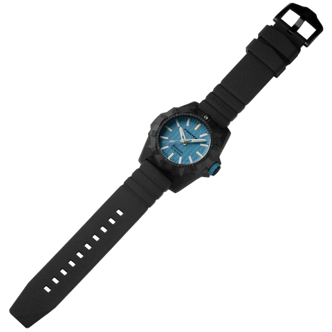 The PT4003 introduces light blue accents that add contrast and visual clarity to ProTek’s most aggressive dive watch platform. Featuring a rugged 45 mm carbon composite case, 60-click unidirectional ratcheting dive bezel, light blue dial details, and a matching light blue rubber strap, this model balances bold style with serious dive-ready performance.
