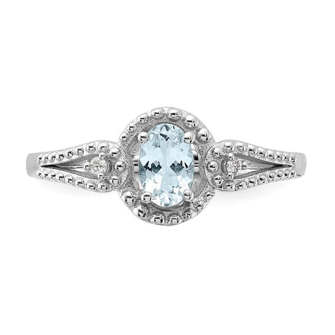 Genuine Diamond and Genuine Aquamarine Ring - March Birthstone Ring