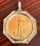 Men's 1 full ounce USA Gold Eagle Coin and Diamond 14k Gold Pendant, over 1 ctw Diamonds