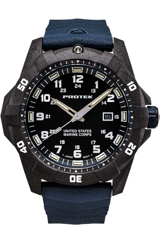 The Protek Carbon Dive 1010 Series is officially recognized as a U.S. Marine Corps watch, chosen for its accuracy, durability, and ProGlo™ Swiss tritium illumination. Featuring a carbon composite case, scratch-resistant sapphire crystal, and 300-meter water resistance, it is built for the toughest missions.