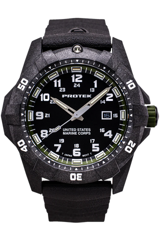 Protek PT1015 – Carbon Dive 1010 Series, Black & Green USMC Military Dive Watch