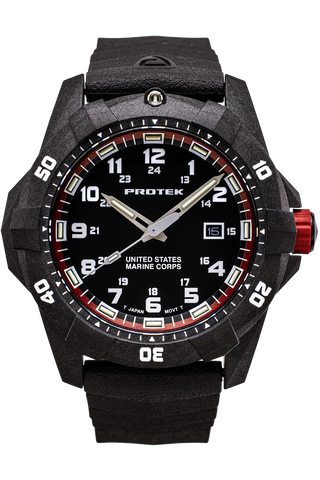 Protek PT1012 – Carbon Dive 1010 Series, Black & Red USMC Military Dive Watch
