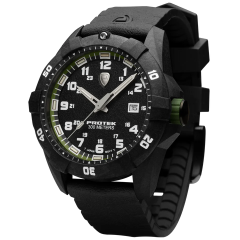 Protek PT1005 – Carbon Dive 1000 Series, Black & Green Military Dive Watch