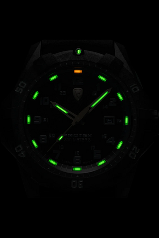 - Green Tritium on the Hour, Minute and Second Hands plus the Elapse Time Bezel