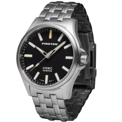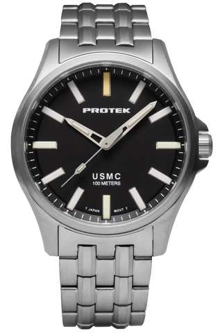 ProTek PT3101BR – Titanium Field 3100 Series, Black Dial USMC Field Watch on Titanium Bracelet