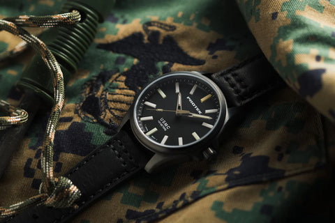 - 40 mm Black Titanium Case with Black USMC Dial